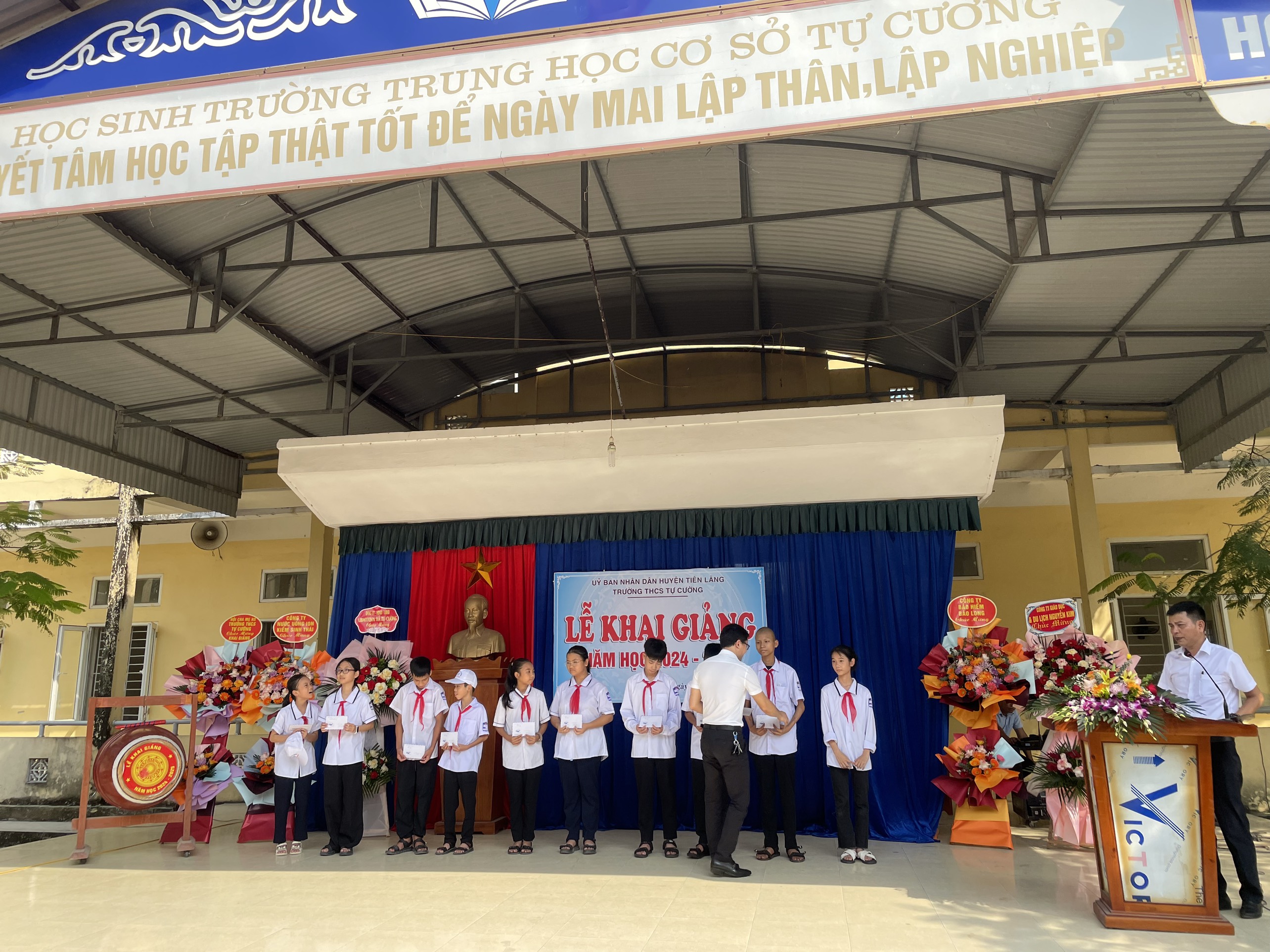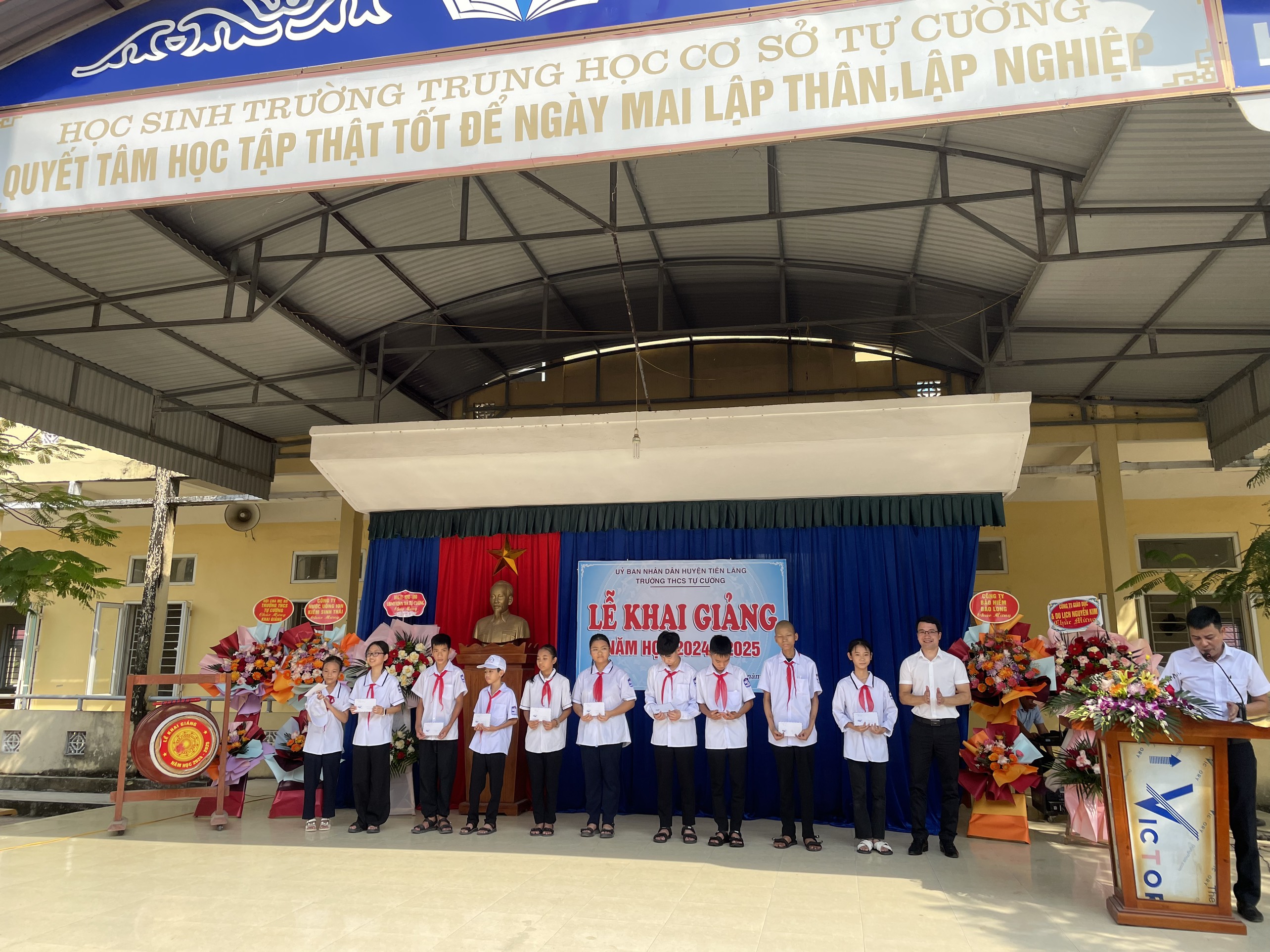 Ngày 05/9/2024, Trường THCS Tự Cường tổ chức thành công Lễ khai giảng năm học mới 2024 - 2025. Trong Lễ khai giảng, nhà trường và các nhà hảo tâm đã trao tặng 20 suất quà với tổng số tiền 10.000.000 đồng cho học sinh có hoàn cảnh khó khăn với mong muốn động viên khích lệ các em vượt khó học tốt đạt nhiều thành tích trong học tập.